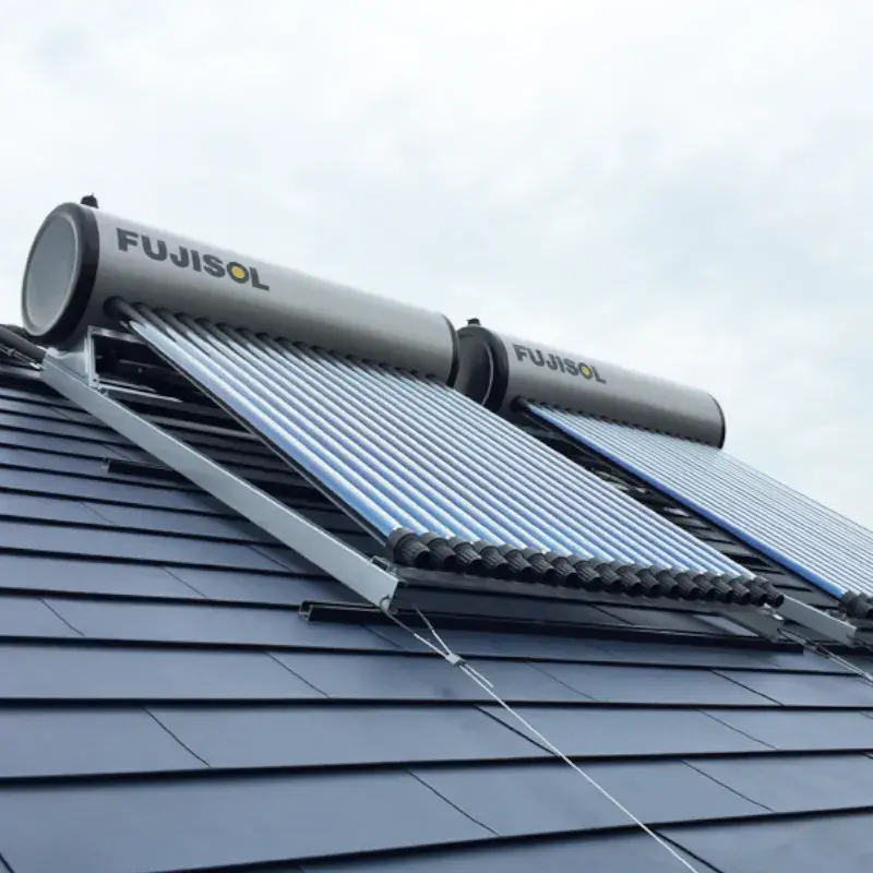Na Fujisol dispomos de uma vasta gama de unidades compactas de termossifão adaptadas às necessidades de cada casa em função do consumo: 120 litros, 200 litros e 300 litros com estruturas adaptadas tanto a telhados inclinados como planos.
